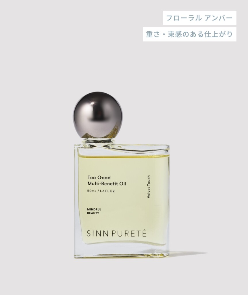 トゥーグッド マルチベネフィットオイル:髪・ボディどちらにも使える万能オイル。しっとりしながらも軽やかで、まるで心まで潤うような感覚。お風呂上がりや就寝前のリチュアルに最適です。Purification of Mind(心の浄化)シリーズとして、香りでリラクゼーションを深めます。